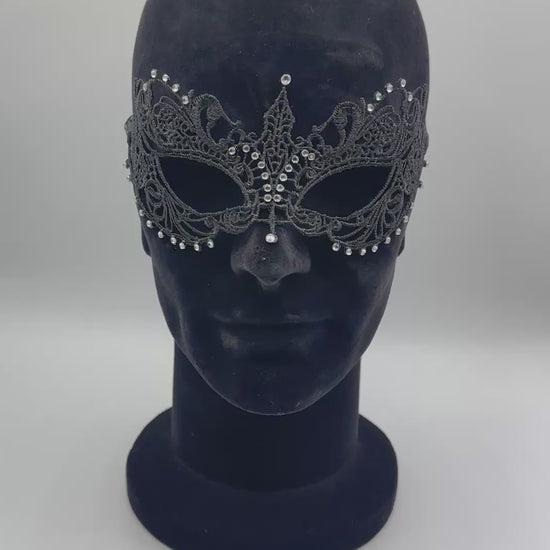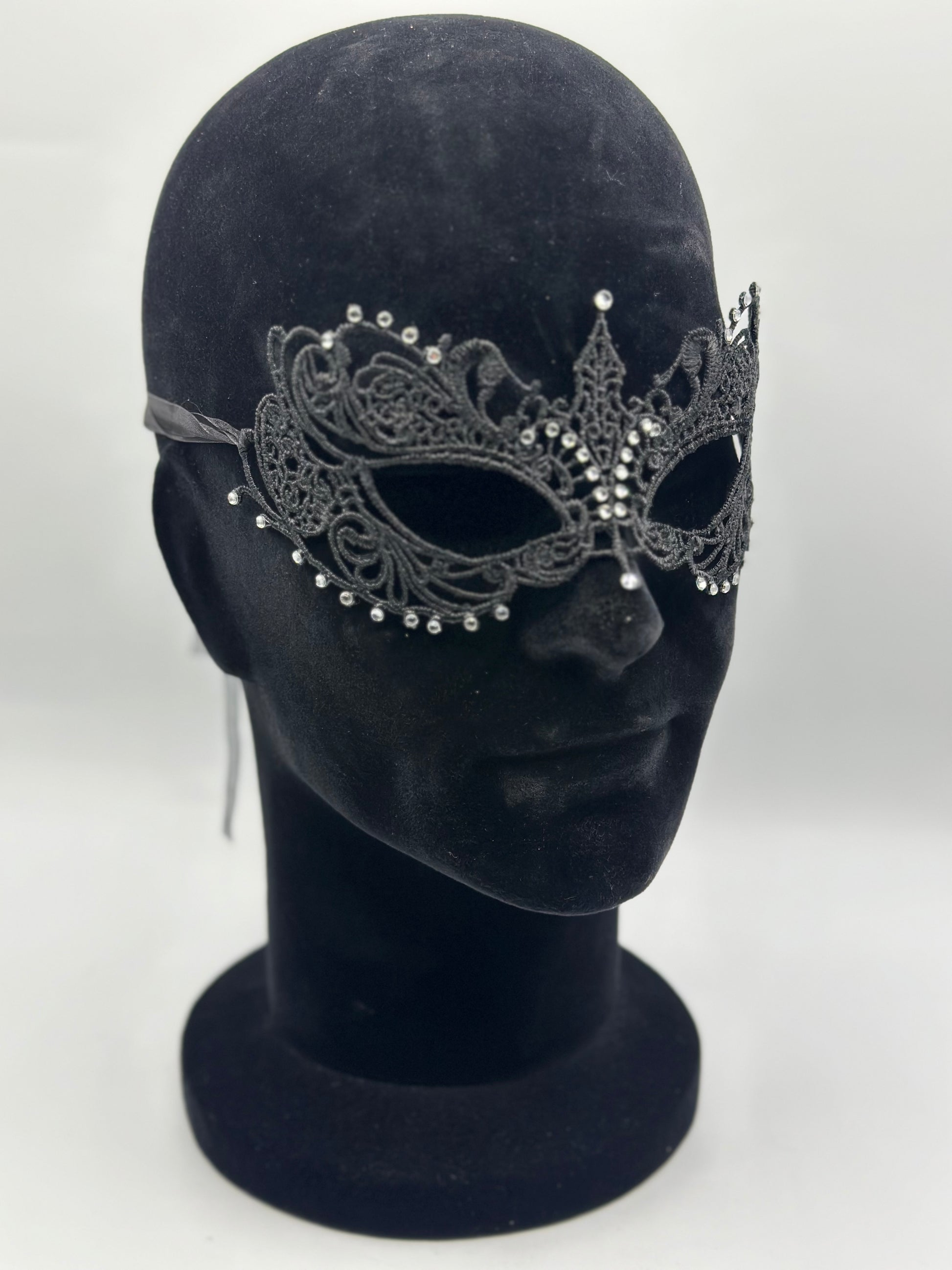 Wunderschöne Augenmaske aus Spitze. Diese Augenmaske aus Spitze ist schwarz und mit wunderschönen glitzernden Strasssteinen besetzt.