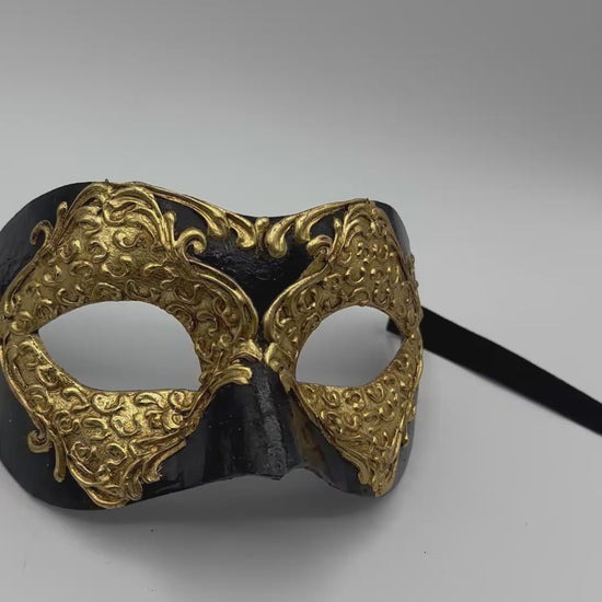Choose style, class, and mystery with this black and gold men’s masquerade mask.