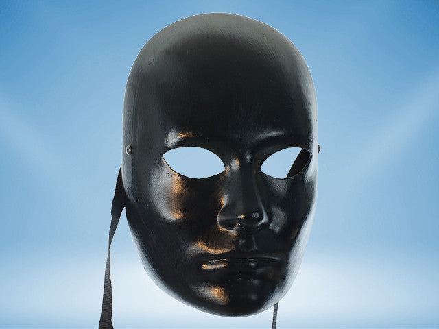 Here you find our Venetian style full-face costume mask in black colour.This is an intriguing mask with such an expressionless face that it makes you wonder who or what is behind this mask.The black full-face mask would be an intriguing object on your wall but can most definitely be used for a theatre performing. The mask has straps for wearing. The size: approx. 16x24 cm.