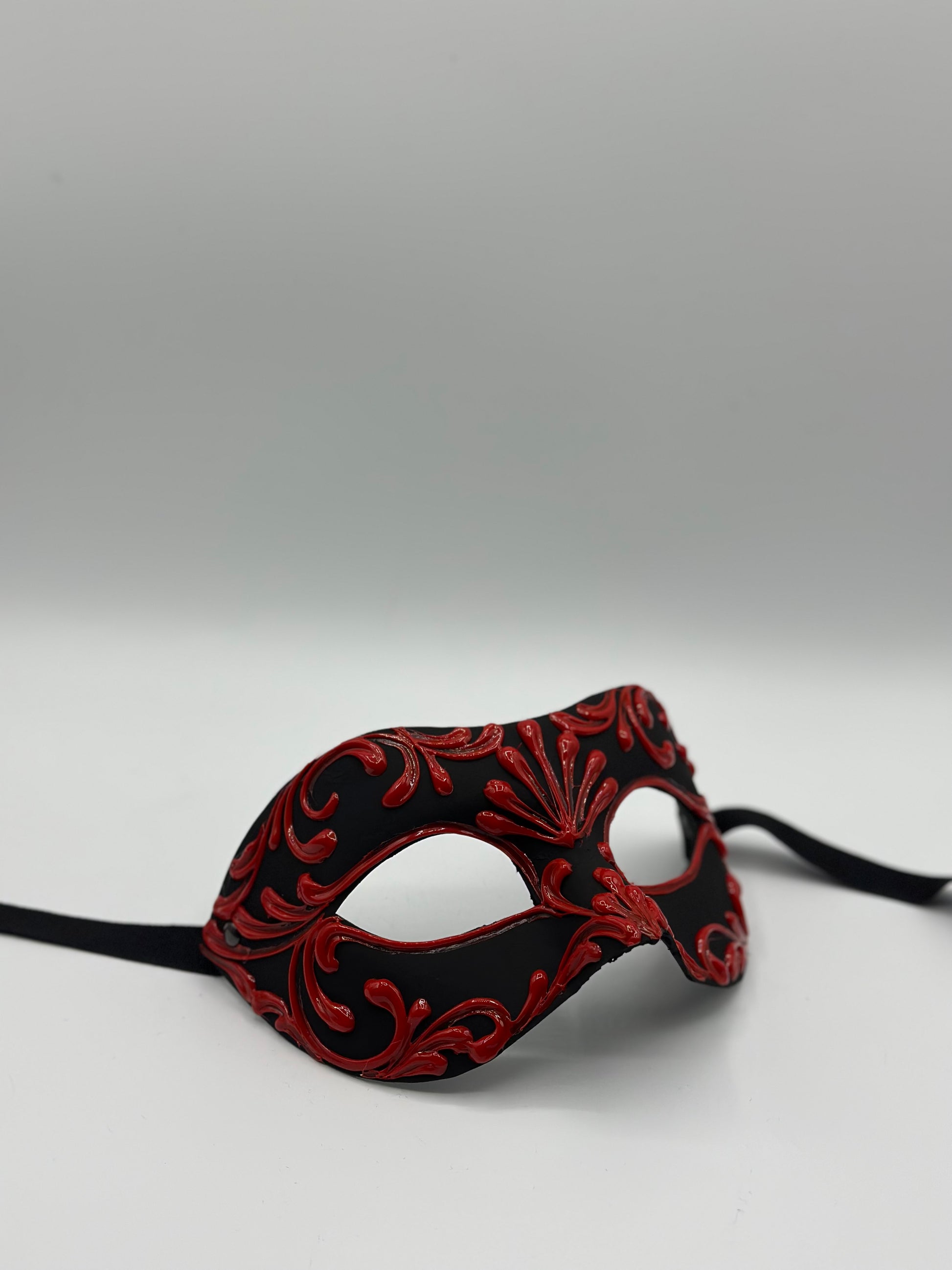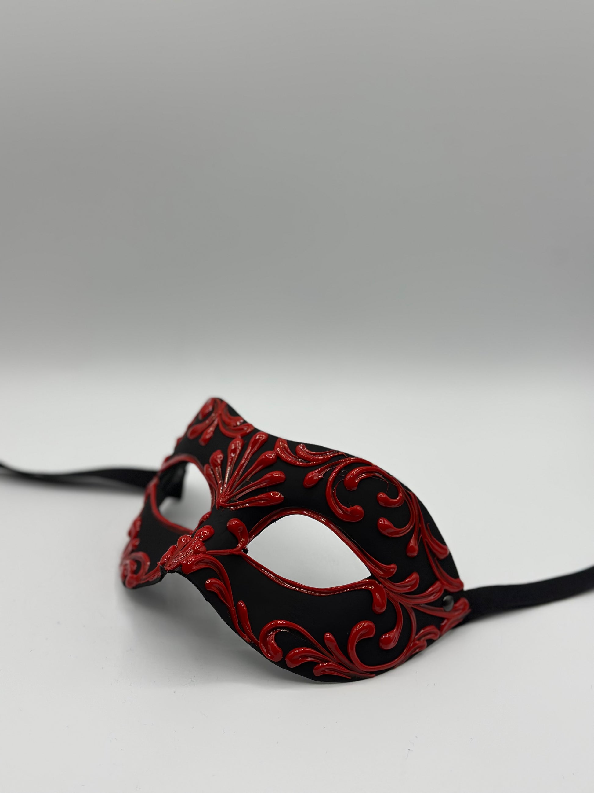 The classic black and red color combination combined with ornate baroque patterns gives this mask a luxurious and timeless look — perfect for masquerade balls, galas, carnival, Halloween, or themed parties.