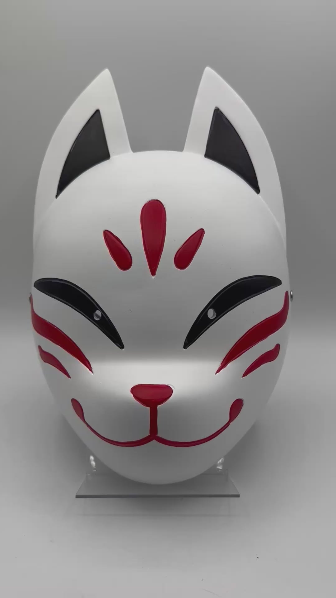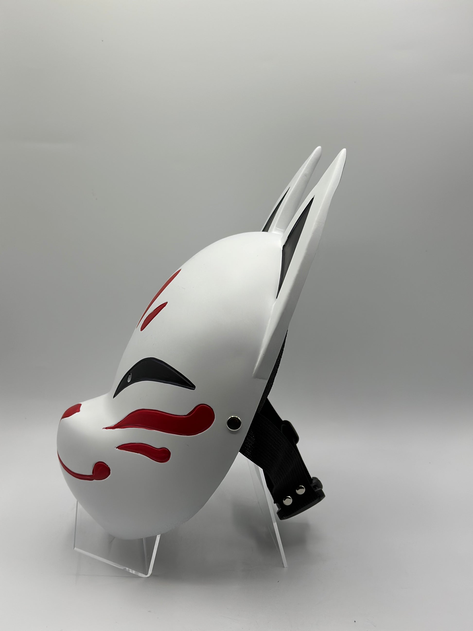 This stunning Japanese fox mask is handcrafted from resin and meticulously hand-decorated. While designed to be worn, it also serves as an elegant decorative piece.