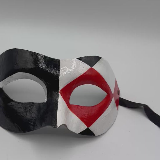 Embrace the timeless charm of Venice with this striking Venetian mask in black, white, and red.