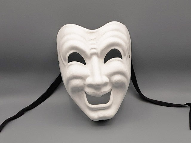 White Blanco papier-mâché Commedia dell’arte Comedy mask or Ridi